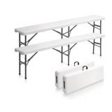 6 Feet Plastic Folding Bench Outdoor Picnic Party Seat White - 2pack
