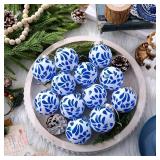 24 Pcs Mexican Talavera Christmas Tree Ornaments Blue White Mexican Balls Plastic Decorative Navidad Ornaments 2.4 Inches Holiday Hanging Decorations for Xmas Holiday Party Favors Home