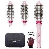 Wavytalk Heatwave Pro Ionic Thermal Brush Set, Dual Voltage 3-Size Heated Round Brush for Short to Long Hair, Bilateral Negative Ions for Frizz-Free Shiny Blowout, Pink