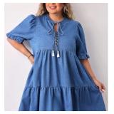 Baby doll denim dress with tassels and buttons. Specifically made for plus size.