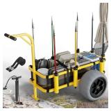 Bonnlo Beach Fishing Cart, Beach Wagon Trolley with 16" Big Balloon Wheels for Sand, Foldable Trailer with Large Cargo Deck, 400 lbs Load Capacity, 8 Fishing Rods Holders, Mesh Bag, Hand Pump