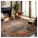8x10 Area Rug Washable Vintage Traditional Mat Distressed Indoor Foldable Thin Retro Accent Floral Non Slip Carpet Rugs for Living Room Dining Room Office