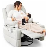 Rocking Chair Nursery with Adjustable Armrests, Electric Glider Recliner Nursing Chair for Breastfeeding, Power Swivel Recliner Chairs with USB Port and Storage, FSC Certified (Vanilla) (INCOMPLETE SET, BOX B ONLY)