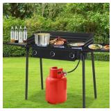 3 Burner High Pressure Propane Outdoor Stove with Removable Side Shelves and Windscreen