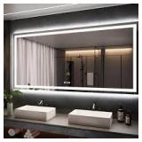 (14). Apmir 77 in. W x 36 in. H Large Rectangular Frameless Double LED Lights Anti-Fog Wall Bathroom Vanity Mirror in Tempered Glass