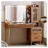 (42). Vanity Desk with 29.53" HD Lighted Mirror, 47.24" Big Modern Vanity Desk with Mirror and Lights, Makeup Vanity with 5 Drawers and Storage Shelves and Charging Station,Walnut