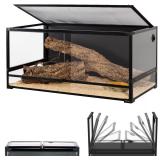 (27). REPTI ZOO Collapsible 120 Gallon Reptile Tank, Tempered Glass Large Reptile Terrarium 48"x24"x24", Black PVC Back, Front & Top Ventilation & Anti Escape Lid, Easy Folding