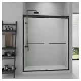 (13). Semi-Frameless Sliding Shower Door W: 60 x H:72 Inches, Bathroom Sliding Door Easy to Install, 1/4 "Clear Glass, Black Hardware Double Sliding Glass Shower Room (Black, 60IN)