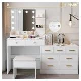 【3-Color LED Light】The vanity desk features a specially shaped dimmable lighting mirror with 3 different LED lighting colors, including natural, warm and cool light, for a variety of indoor lighting and environments to optimize your makeup