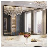 Large Bathroom Mirror for Wall, 72x40 Inch Matte Black Framed Bathroom Vanity Mirror for Farmhouse Living Room Bedroom, Anti-Rust, Tempered Glass, Rounded Corner, Horizontal/Vertical