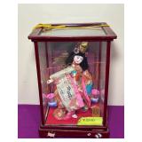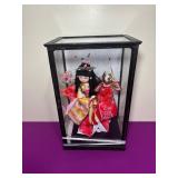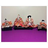 Vintage Japanese dolls, some in display cases. Hina dolls.