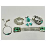 Beautiful jewelry including a sterling cuff bracelet signed Carlos Diaz. Calos Diaz watch band, Sterling liquid silver necklace. Costume jewelry includes necklaces, earrings, pins, rings, watches and more.