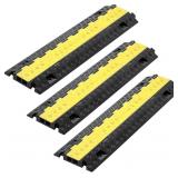VEVOR 3 PCs Rubber Cable Protector Ramp, 2 Channel Heavy Duty TPU Floor Cord Hose Wire Cover, 1.2'' W x 1.1'' H Channel Size, Traffic Speed Bump with Flip-Open Top Cover, for Indoor Outdoor Use