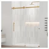 (46) DELAVIN 56-60.in W x 72.in H Frameless Shower Door, Water Repellent Gold Shower Door with 5/16" (8mm) Clear Tempered Glass, Easy Sliding Showe Door with Explosion-Proof Film, Stainless Steel