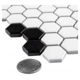 Merola Tile Metro 1" Hex Matte White W/Flower 10-1/4" X 11-7/8" Porcelain Floor and Wall Tile