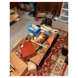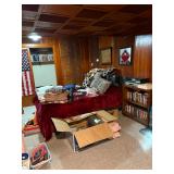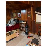 Couches, bedroom furniture, glassware , kitchen decor, artwork, end tables, lamps, vintage rolling stones magazines, curio, dining table, crystal, tv’s, stereo, amps, electric guitars, guitar, tools, lawn mower, microwave, holiday decor, clothing, refrigerator, shelving, organ, drones, remote helicoptor, tons of music equipment supplies, antique trunk, wardrobe, wing back chair, midcentury end tables, pole lamp, dressers, blankets, tapes, records, cd’s, dvd’s, video recorders, slides, slide projectors, projectors, walker, potty chair, luggage, golf clubs, rocker much more!