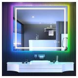 (53) LED Mirror for Bathroom, 48"X40" with 8 RGB Backlit +3 Front Lit (Adjustable Individually), Anti-Fog, Large Lighted Bathroom Vanity Mirror for Wall,Shatterproof,Memory Function,Tempered Glass