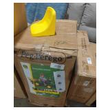 - Lower-level clubhouse with door, mailbox, windows, a play phone, stove, sink and accessories so kids can really feel at home