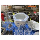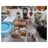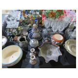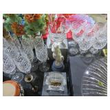 Waterford! Many pieces with boxes! Large console bowl; Large bowl; Small bowls; Stemware sets; Clock; Galle signed multi-layer butterfly artwork; Jade-ite mixing bowl set; Decanter; Colored glass pitcher; Mary Gregory style decorated vases; Punch bowl on stand with cups; Divided dishes; Paperweight; Baskets; Candlesticks; Ship’s decanter; Relish dishes; Bowls; Glass roses; Carnival glass bowl and much more!