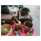 MORE: Globe on stand; Milk cans; Bose radio; Brass bucket; Stone trees & flowers; Stone grapes; Nice Brass items – candlesticks, censer; letter holder, snuffers, letter opener, sconces & more; Virginia Metalcrafters brass; Cigar boxes; Old advertising tins; Binoculars; Stein;