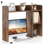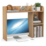 Desktop Bookshelf, Wood Desk Hutch Organizer for 27 Inch Computer Monitor