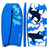 Goplus 33'' Lightweight Super Bodyboard Surfing W/Leash EPS Core Boarding Blue Shark