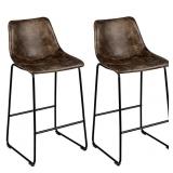 26 Inch Counter Height Bar Stools Set of 2 with Metal Frame and Footrest, Black