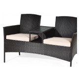 Costway Rattan Outdoor Loveseat with Brown Cushions