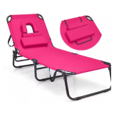 Metal Foldable Tanning Lounge Beach Chair in Pink with Face Hole and 5-Position Adjustable Backrest