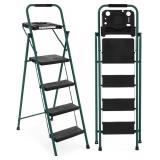 Goplus Folding Step Ladder, 4-Step Ladder w/Tool Tray