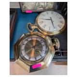 Two Brass Clock-Shaped Decorative Wall Clocks With |