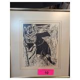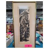 Framed Artist’s Proof Black and White Woodcut Pr |