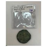 Byzantine Justin II Sophia Follis Coin, 565-578 AD |