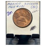 Mexican 20 Centavos Coin 1965 Copper-Clad |