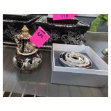 Ceramic Nativity Scene and Wrought Iron Candle Hol |