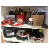 HOUSEHOLD ITEMS, GARAGE, TOOLS: HUGE ASSORTMENT OF TOOLS, GARAGE ITEMS AND VARIOUS HOUSEHOLD AND FURNITURE ITEMS