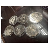 Selling Live in our Gallery at Public Auction one man's Coin & Stamp Collection to include: Coins to include: Gold Kruggerands, 3 Full Morgan Dollar Collector books with all Carson Cities 1878-1885, 1844 Seated Half Dollar, Peace Dollars including full collector books with all dates, Modern Eagles including TD Rogers, Silver Melt, Early US Coins, Graded Coins, many Foreign Coins, FAO money, Canadian Olympic & Bahama Gold, Complete Indian Head Penny Group. Stamps to include 23+ lots of early Duck Stamps all in good unhinged Blocks from RW1 to RW23 and more! Note: Part II of one man's collection with over 100+ Quality & Rare Lots with a very large Variety. Catalogue are available thru Email or attached here. No reserves or minimums. Caplan's Auction Co. 8600 Foundry St. Savage, MD 20763 410-750-7676 Caplansauctions@gmail.com