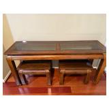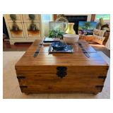 Thank you for your interest in our Ocean Moving Sale. This event features a beautifully maintained home, showcasing a wooden rectangular dining room table in excellent condition, ideal for a primitive-style setting.