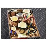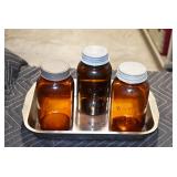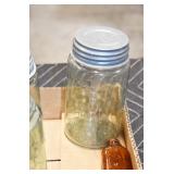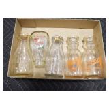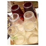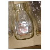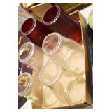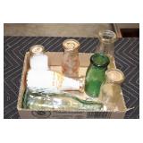 Antique Glassware: Vintage Glass Bottles and Jars, Milk Bottles, (6) Royal Doulton Mugs, Milk Glass, Ned Smith Glasses and Plates, Lenox Glass, Decorative Vases, and Other
