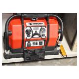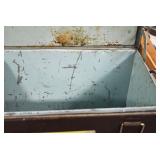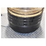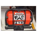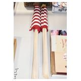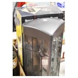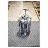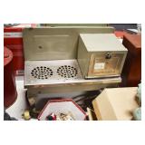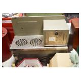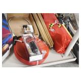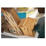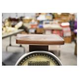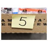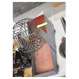Furniture: Metal Storage Racks on Wheels, Wooden Display Case, Music Stand, File Cabinet, Wooden Gun Cabinet, Metal Magazine Rack, Red and Blue Barrister Style Bookcase, 2-Shelf Barrister Bookcase, Frigidaire Wine Cooler, Sewing Machine Table, (7) Matching Plastic 4-Shelf Racks, Champion Model 77 Commercial Sewing Machine, Wooden Benches, (2) Clear Plastic Chairs, Craftsman 10-Gallon Portable Air Compressor, Chandeliers, STP Oil Treatment Display, Large Wind Chimes, Large Amount of Various Chairs, End Stands, Tables, and Shelves, and Other