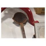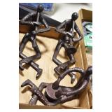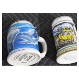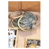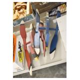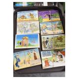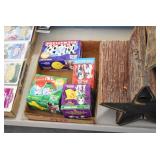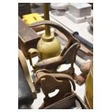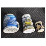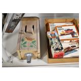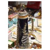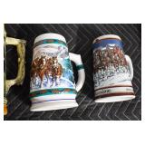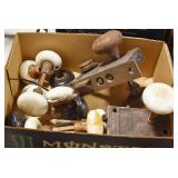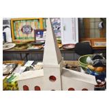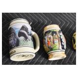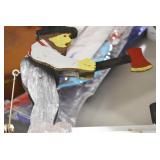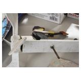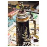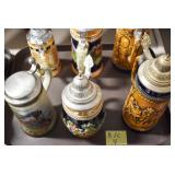Antiques and Collectibles: (11) Lots of Various Vintage Childs Books, (11) Lots of Various Baseball Caps, Pottery Crocks and Jugs, Pottery Bowls, Vintage Comic Books, Marbles, Stained Glass Items, Shoeshine Tin, Vintage Banks, Castware, Large Amount of Vintage and Modern Tools, Original Black Forest Coo-Coo Clock, Old Photographs, Holiday Decorations, Sleigh Bells, Wooden Duck Decoys, Advertising Tins and Signs, Vintage Scales, Vintage Postcards, Vintage Eyeglasses, Political and Other Pinback Buttons, Bolo Ties, Old Wagon Wheel, Barbie Dolls, German Steins, Stamps and Stamp Albums, Large Amount of Football, Racing, Baseball, and Hockey Jackets and Jerseys, Sports Related Baseball Caps and Visors, Framed Prints and Pictures, and Other