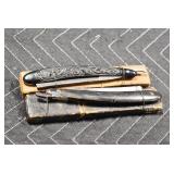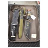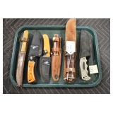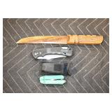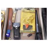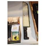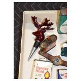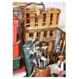 Sporting, Militaria, and Fishing: Firearms, Large Amount of Ammunition, Large Amount of Folding, Pen, and Sheath Knives, Scope Rings and Bases, Ammo Cans, Deer Antlers, European Mounts, (16) Various Machetes and Axes, Military Buttons, Fishing Rods, Reels, Tackle, and Lures, and Other