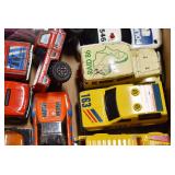 Collectible Toys and Trains: (15) Lots of Hot Wheels, Winross Trucks, Diecast Toy Cars and Trucks, Toy Firetrucks, Diecast Remington Trucks, Slot Cars, NASCAR Collectibles, Scalextrick Grand Prix Never Opened Set, Matchbox Cars, Power Rangers Toys, Farm Country Toys, Toy Truck Banks, Model Airplanes, Wet Works Action Figures, Wooden Toys, Train Engines, Tenders, Cars, Layout Accessories, and Other