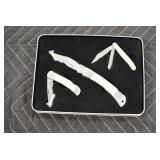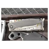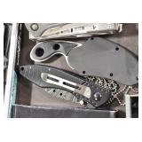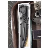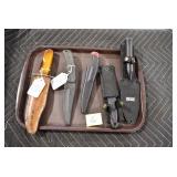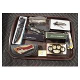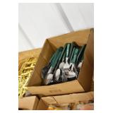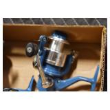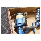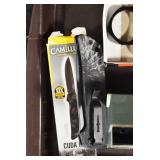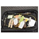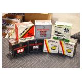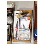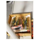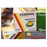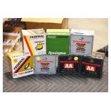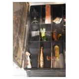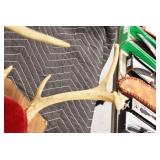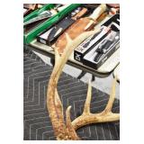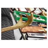 Sporting, Militaria, and Fishing: Firearms, Large Amount of Ammunition, Large Amount of Folding, Pen, and Sheath Knives, Scope Rings and Bases, Ammo Cans, Deer Antlers, European Mounts, (16) Various Machetes and Axes, Military Buttons, Fishing Rods, Reels, Tackle, and Lures, and Other