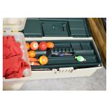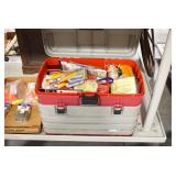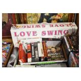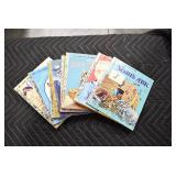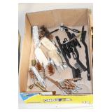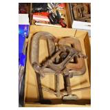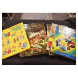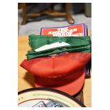 Antiques and Collectibles: (11) Lots of Various Vintage Childs Books, (11) Lots of Various Baseball Caps, Pottery Crocks and Jugs, Pottery Bowls, Vintage Comic Books, Marbles, Stained Glass Items, Shoeshine Tin, Vintage Banks, Castware, Large Amount of Vintage and Modern Tools, Original Black Forest Coo-Coo Clock, Old Photographs, Holiday Decorations, Sleigh Bells, Wooden Duck Decoys, Advertising Tins and Signs, Vintage Scales, Vintage Postcards, Vintage Eyeglasses, Political and Other Pinback Buttons, Bolo Ties, Old Wagon Wheel, Barbie Dolls, German Steins, Stamps and Stamp Albums, Large Amount of Football, Racing, Baseball, and Hockey Jackets and Jerseys, Sports Related Baseball Caps and Visors, Framed Prints and Pictures, and Other