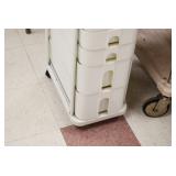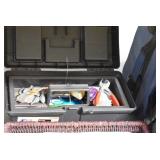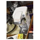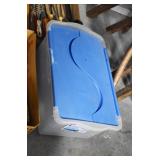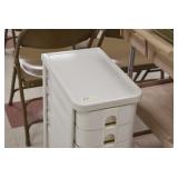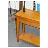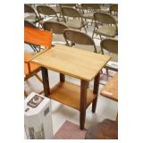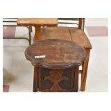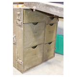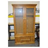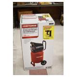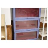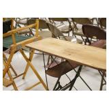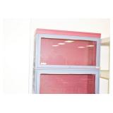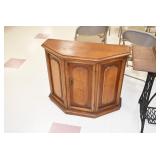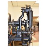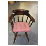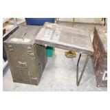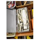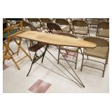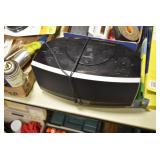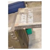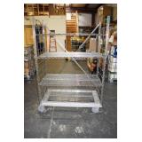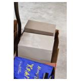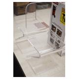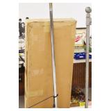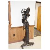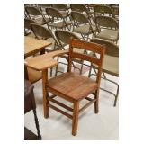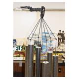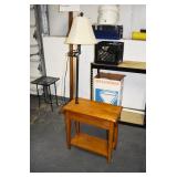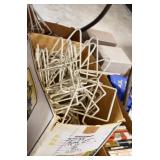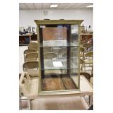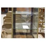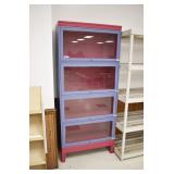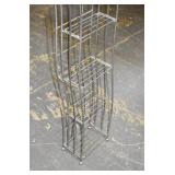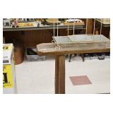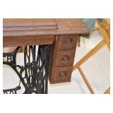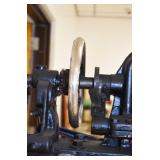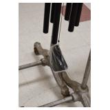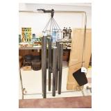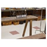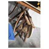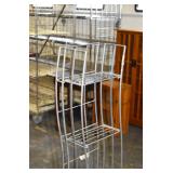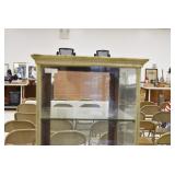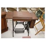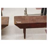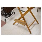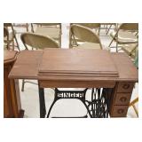 Furniture: Metal Storage Racks on Wheels, Wooden Display Case, Music Stand, File Cabinet, Wooden Gun Cabinet, Metal Magazine Rack, Red and Blue Barrister Style Bookcase, 2-Shelf Barrister Bookcase, Frigidaire Wine Cooler, Sewing Machine Table, (7) Matching Plastic 4-Shelf Racks, Champion Model 77 Commercial Sewing Machine, Wooden Benches, (2) Clear Plastic Chairs, Craftsman 10-Gallon Portable Air Compressor, Chandeliers, STP Oil Treatment Display, Large Wind Chimes, Large Amount of Various Chairs, End Stands, Tables, and Shelves, and Other