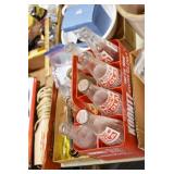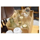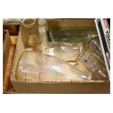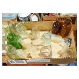 Antique Glassware: Vintage Glass Bottles and Jars, Milk Bottles, (6) Royal Doulton Mugs, Milk Glass, Ned Smith Glasses and Plates, Lenox Glass, Decorative Vases, and Other
