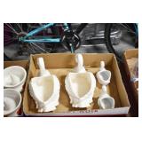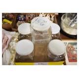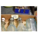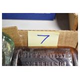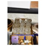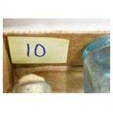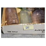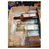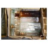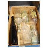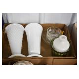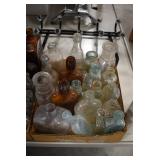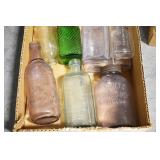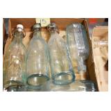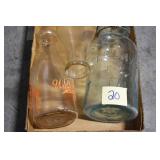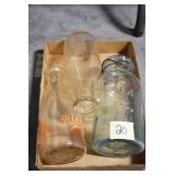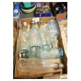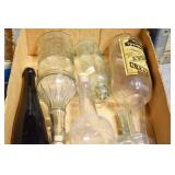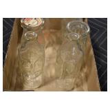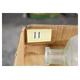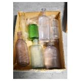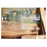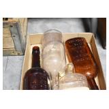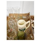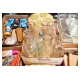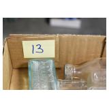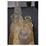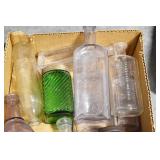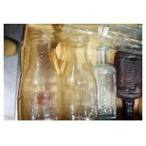 Antique Glassware: 25 Lots of Clear and Colored Vintage Glass Bottles, Glass Jars, Milk Bottles, Large Glass Bottles, Uranium Glass, Vaseline Glass, Chicken on the Nests, Milk Glass, Green Glass, Blue Glass, Lenox Glass, Waterford Crytal Glass, Gorham Crystal Bowl, Pyrex Mixing Bowls, Fire King Kitchenware, Pyrex Casserole Dishes, China Sets, Royal Doulton Dogs, and Other