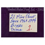 - Buyers Choice of (21) United Stated Mint Proof Sets – Various Dates Between 1969 and 1994