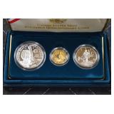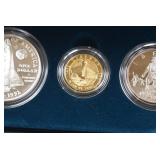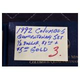- 1992 Columbus Quincentenary 3-Coin Proof Set Including: Half Dollar, Silver Dollar, and 5.00 Gold